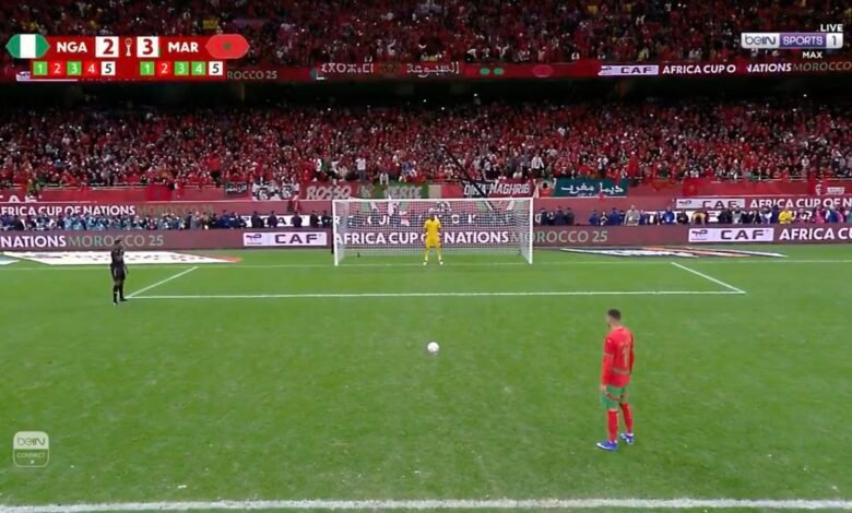 المشهد التاريخي الذي يحتاج الي علماء صوتيات ومرئيات ليشرحوا للعالم بأكمله ما حدث لحظة تسجيل يوسف النصيري لركلة الترجيح المصيرية التي حسمت تأهل منتخب المغرب الي نهائي كأس الامم الافريقية!