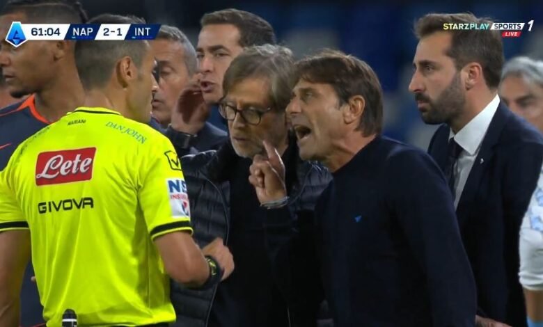 شاهد اللقطة الغريبة والغير أخلاقية التي حدثت بين كونتي مدرب نابولي ولاوتارو مارتينيز لاعب إنتر